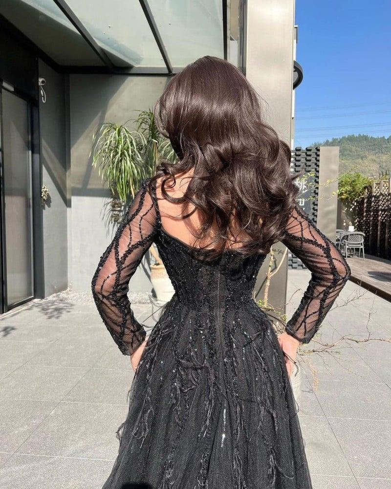 فستان اللون أسود حق سهرة ناعم حلو يجنن