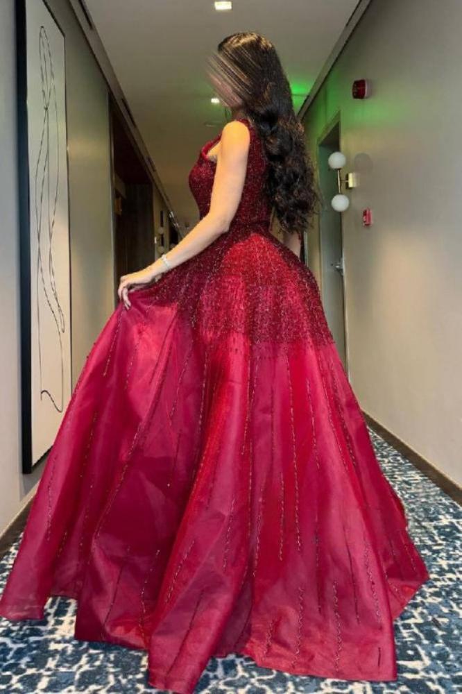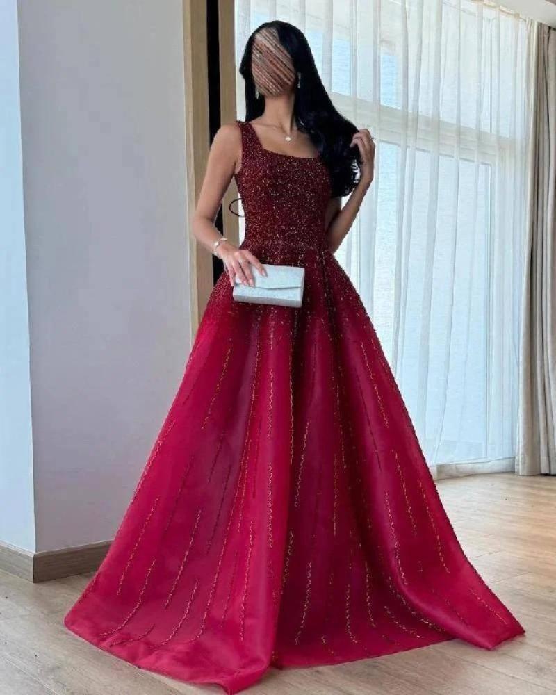 * الجزء العلوي: صدرية مطرزة بالكامل بالخرز اللامع.