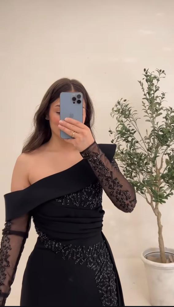 فستان سهرة اللون أسود مع قماش باربي مطرز